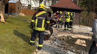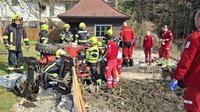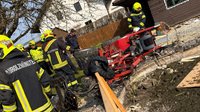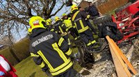 Beim Eintreffen stellte sich heraus, dass ein Hoftrac in ein Biotop gekippt war und eine Person unter der Maschine eingeklemmt wurde. In Zusammenarbeit mit dem Roten Kreuz und der Polizei wurde das Fahrzeug mittels Hebekissen vorsichtig angehoben. Die Rettungsmaßnahmen erfolgten dabei in enger Abstimmung mit der Notärztin.